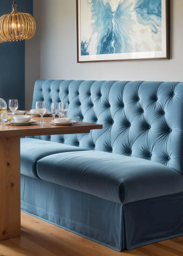 Заказали тахту в антивандальной ткани, простой и лаконичный дизайн.